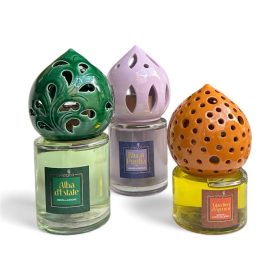 Il Pumo è un manufatto di ceramica artigianale della tradizione di Grottaglie (BA), nasce come portafortuna e come oggetto di arredo. Rappresenta un bocciolo di rosa pronto per sbocciare. Nella tradizione pugliese, oltre ad essere un prezioso oggetto di arredo, è simbolo di abbondanza, prosperità e buone novità. Lo proponiamo come prezioso diffusore per profumo ambiente con bacchette in legno “Arancia e Cannella” nel rispetto della tradizione natalizia.